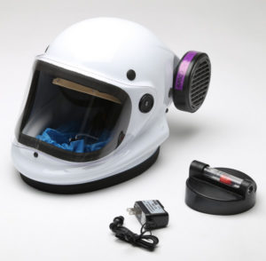 This powered air-purifying helmet respirator has fan blowers, batteries and filters all built into the helmet, giving you excellent freedom of movement in fields or tighter working areas.